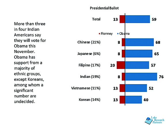 Interesting data. According to polling by Lake Research Partners published by Rediff recently, 76% of Indian-Americans are leaning toward voting for Obama, with only 8% saying they will vote for Romney.