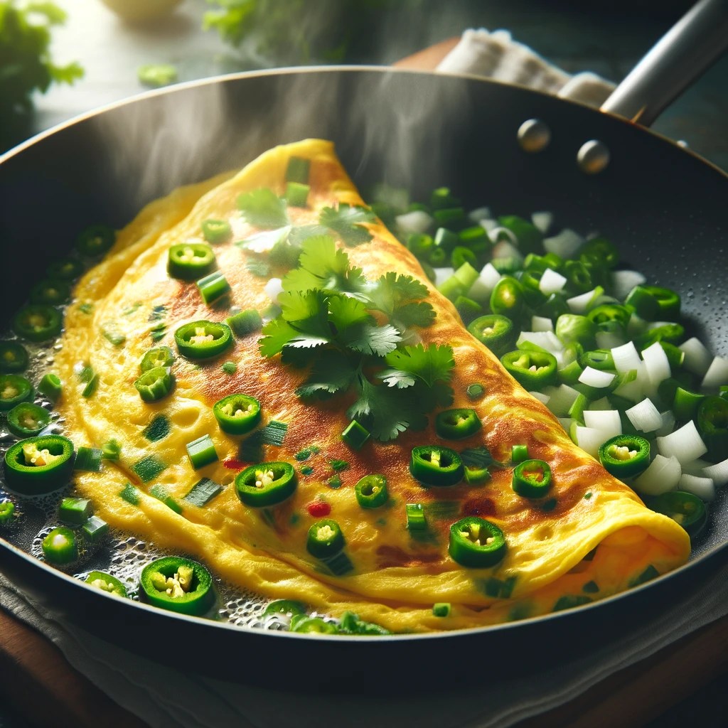 When I came to the United States in 1970, a senior resident in the dorm I stayed in made omelets and served a couple of us- for a price. Then I started cooking them myself, making omelets his way with onions and chillies only. Then I experimented further by adding ginger and cilantro.